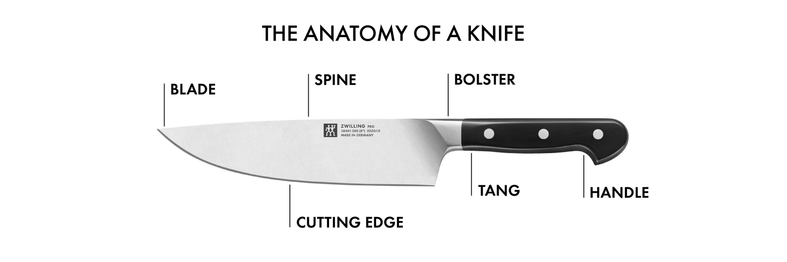 Tang, spine, and bolster – there are a lot of terms you’ll hear when shopping for knives, especially if you’re looking to buy the ideal knife for a specific purpose. Luckily, we’re here to help you with this important decision. By learning a little knife terminology along with the main parts of a knife, you can make a more informed decision on the perfect knife for you.