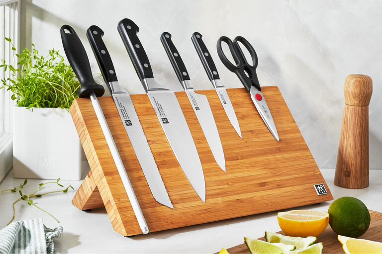 Our product offerings include a variety of handle shapes and materials. The best way to find the knife that feels right in your hand is to hold and try out various handle designs. ZWILLING offers three main types of knife handles: plastic, wood, and micarta.