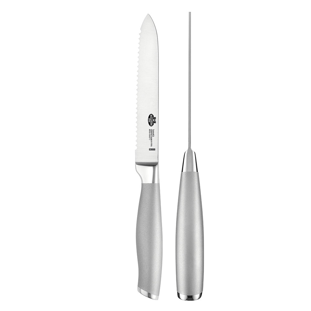A simple tea platter serving tomatoes, ciabatta, salami and pecorino cheese is the perfect Italian tea. And all these delicacies are effortlessly cut or sliced with this kitchen knife. The ergonomically designed stainless steel handle sits comfortably and securely in the hand, while the finger guard provides additional safety – whether you’re an amateur or professional chef.