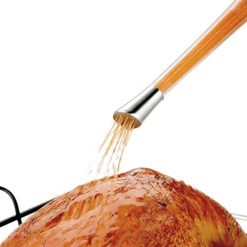 The one of a kind shower head will baste sauce over your meat evenly with one simple squeeze.