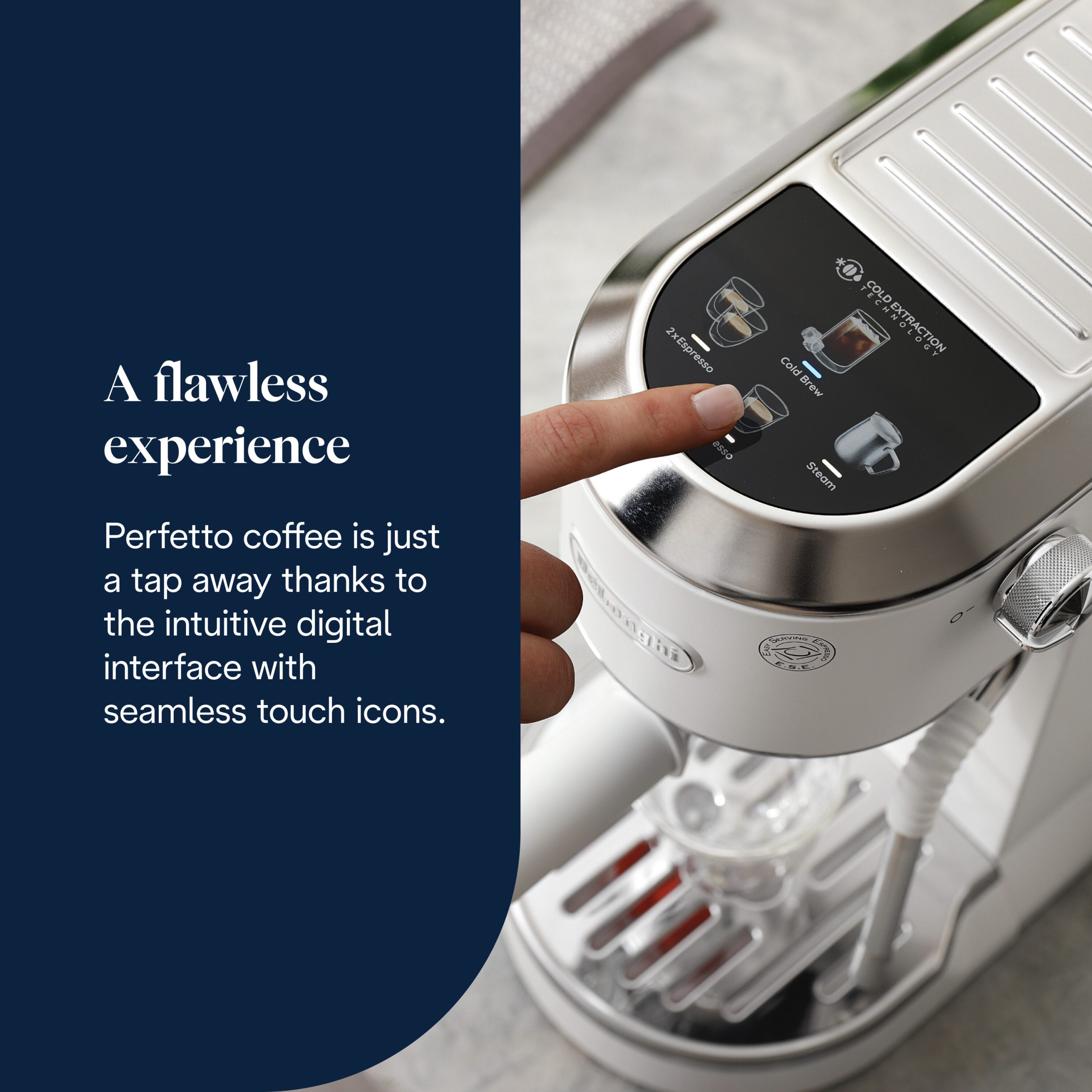 With its distinctive design, the Dedica Duo is the ideal solution for enjoying both traditional espresso and refreshing Cold Brew coffee at home. Easy to use and intuitive, it’s the perfect choice for any coffee enthusiast.