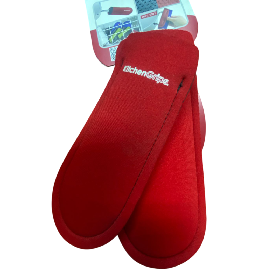 The Kitchen Grips 2 Piece Pan Handle Holder in bold Cherry Red is designed for safe, comfortable handling of hot cookware. Crafted from patented FLXaPrene™ material, these holders offer heat protection up to 260°C and provide a secure, non-slip grip, even when wet or greasy.