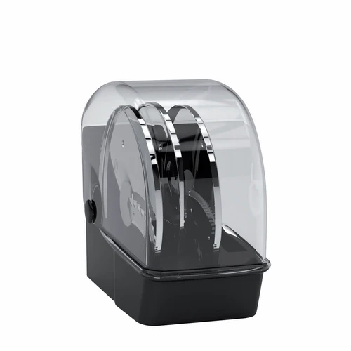 It has three discs, the fine Julienne disc is 2mm x 2mm can be used for fine, matchstick-size, shredding of carrots, cucumbers, apples, pears, peppers, cucumbers, onions, potatoes, courgette, and all other fruit and vegetable preparation, the extra-wide julienne 12mm x 2mm is ideal for strips of ham, cheese or other wide julienne strips or thick shredding of fruit and vegetables and the Fluted disc or Ripple cut disc is ideal for making crisps, mixed vegetable salads and meat for Carpaccio.