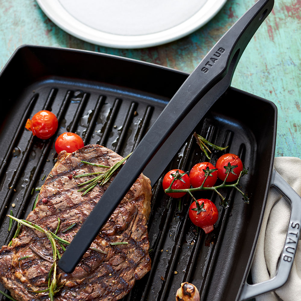 Beloved by professional and home chefs alike, Staub has poured its expertise into a new line of kitchen tools and accessories that compliment its cast iron cookware. Exquisite and ergonomic, Staub Tools are perfectly contoured to fit the hand, pot, and bowl. Safe to use on all cookware surfaces, this full range of kitchen essentials is made from long-lasting black matte silicone and eco-friendly Acacia wood.
