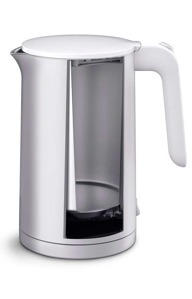 A design piece for daily use: a premium kettle in modern ZWILLING design with heat insulation. The plastic dual-wall body also keeps heat inside the 1850 watt kettle longer while keeping the outside cool to the touch. Moreover, the lid opens to a maximum of 70 degrees to prevent direct contact with hot steam. The seamless, 1.5 l stainless steel container is also extremely easy to clean and the built-in limescale filter – also partially made with stainless steel – ensures better flavour. The snug-fit filter also seals the spout when the lid is closed, thereby keeping spillage to an absolute minimum even when the kettle is accidentally knocked.