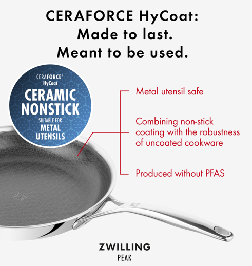 CERAFORCE HyCoat: Gentle cooking and high-heat searing made possible by ZWILLING’s innovative honeycomb structure – the ideal combination of ceramic non-stick coating and stainless steel.