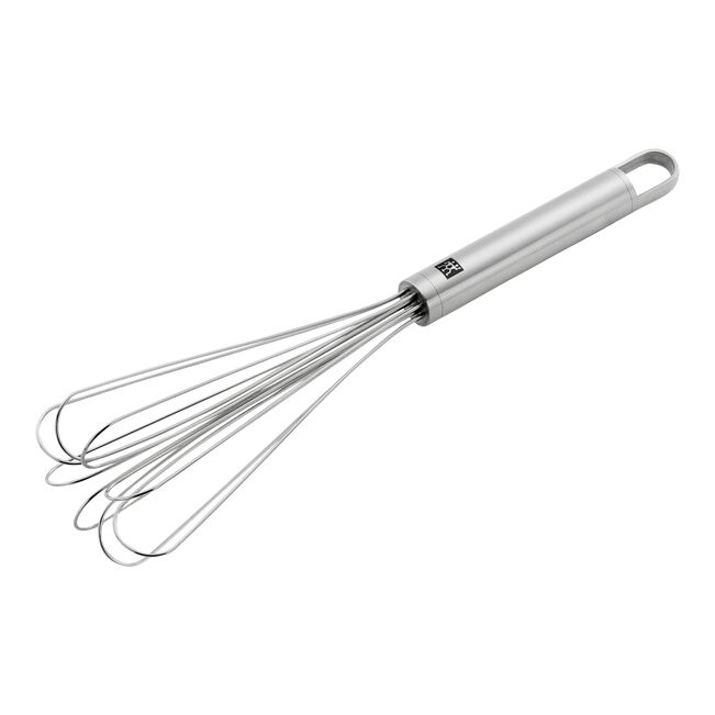 That’s why a whisk is an essential cooking utensil in every kitchen. The ZWILLING Pro series whisk is the ideal kitchen gadget for anything that requires a particularly airy consistency. It is easy and comfortable to use thanks to the ergonomically designed, satin-finish handle, allowing you to effortlessly work longer. The kitchen gadget is made of low-maintenance stainless steel and boasts an unusual design: The wires are especially flexible and overlap to form a drop shape.