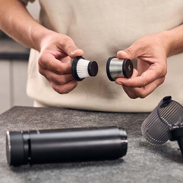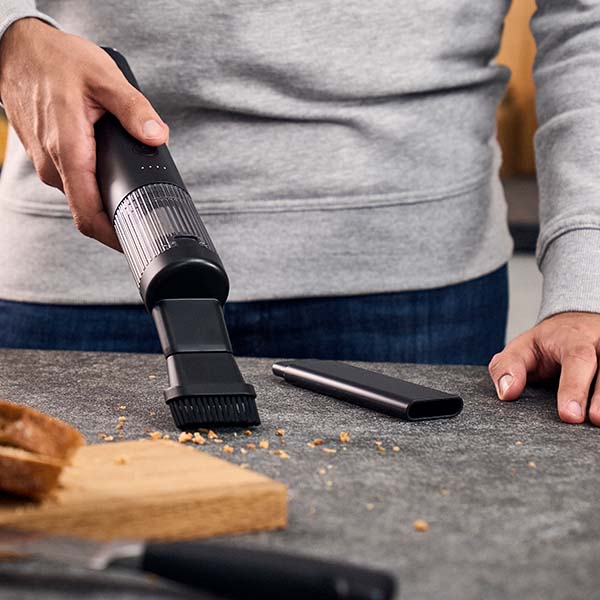 Compact, powerful, and cordless: elevate your kitchen hygiene with the ZWILLING XTEND Handheld Vacuum Cleaner. With two different nozzles for uneven and hard-to-reach surfaces, bread crumbs, coffee powder, dust, spilled salt and other fine dirt don’t stand a chance.